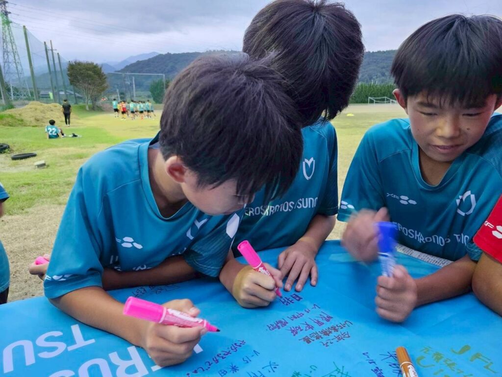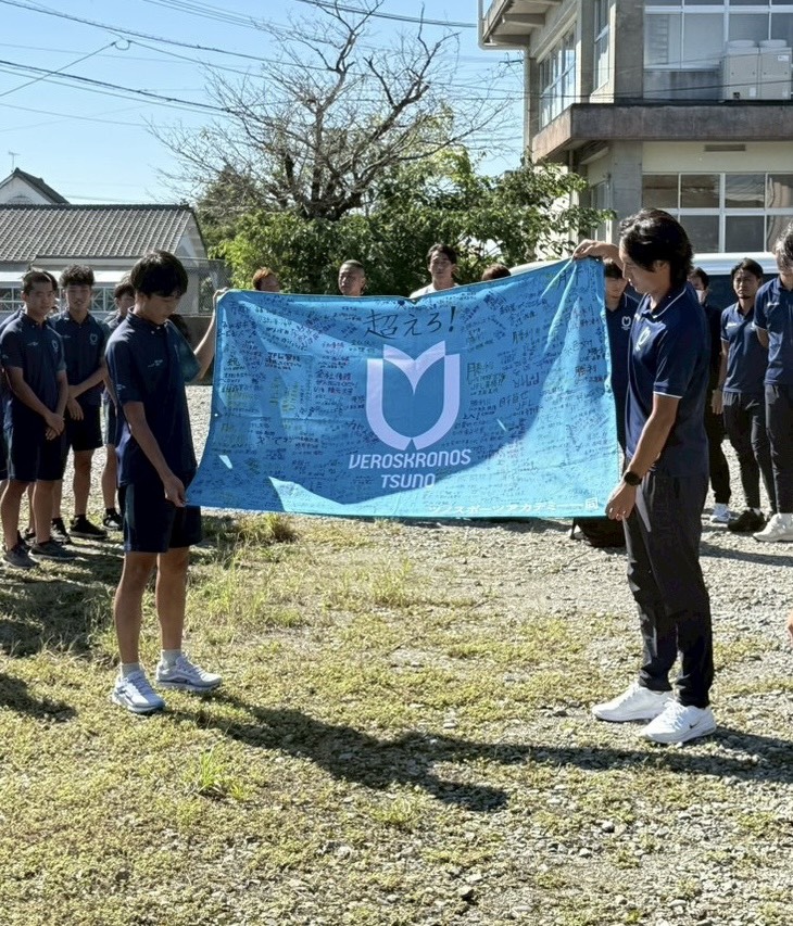 10月9日(木)、ツノスポーツアカデミーよりヴェロスクロノス都農トップチームへ、魂のこもった応援メッセージバナーを贈りました。